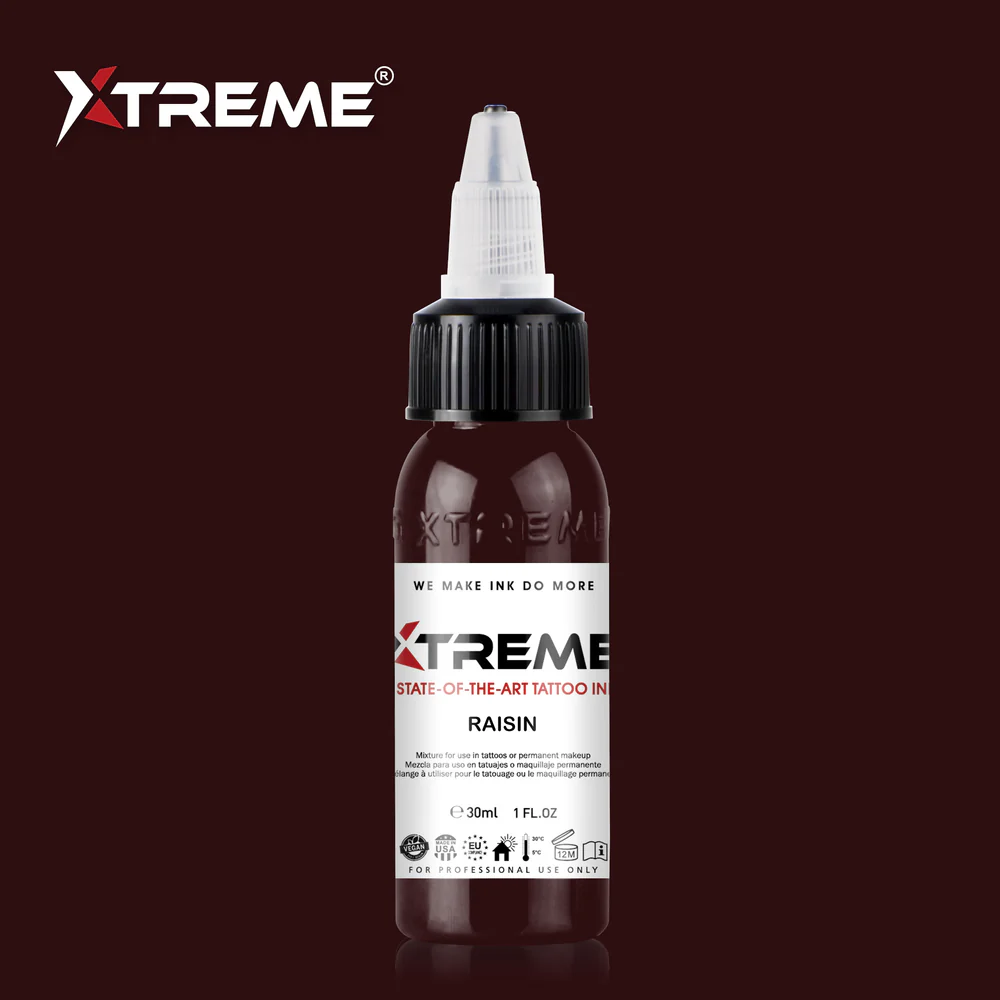 Introducing Xtreme Inks’ Raisin Tattoo Ink: a dark reddish purple with hints of luxurious brown undertones.